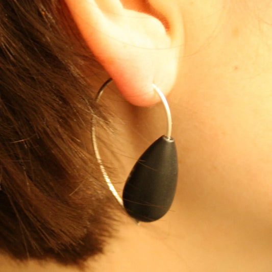 Textile earrings 585 gold hoops wrapped with yarn and synthetic resin anthracite
