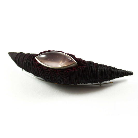 Textile brooch rose quartz yarn synthetic resin 925 silver anthracite