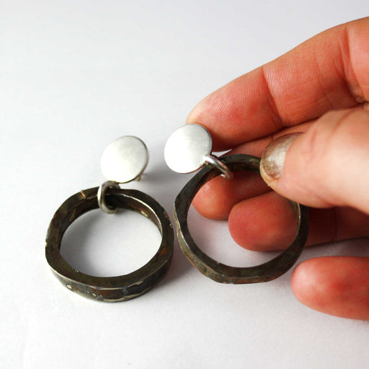 Stud earrings 925 silver and recycled tinplate