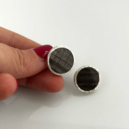 Shimmering Hypersthene Stud Earrings 925 Silver